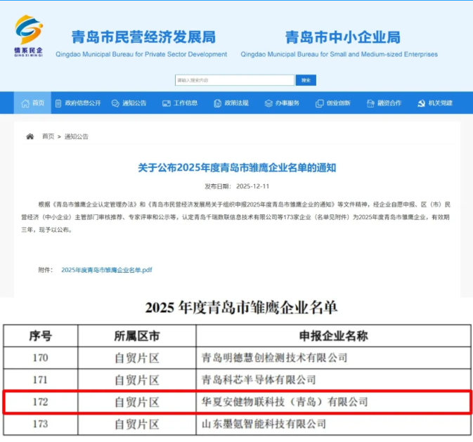 祝贺!华夏安健入选2025年度青岛市雏鹰企业